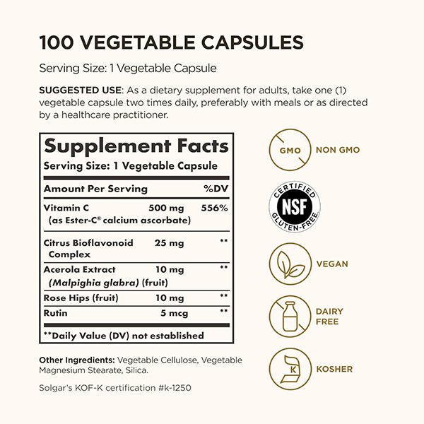 Solgar Ester-C Plus 500 mg Vitamin C (Ascorbate Complex) 90 Capsules